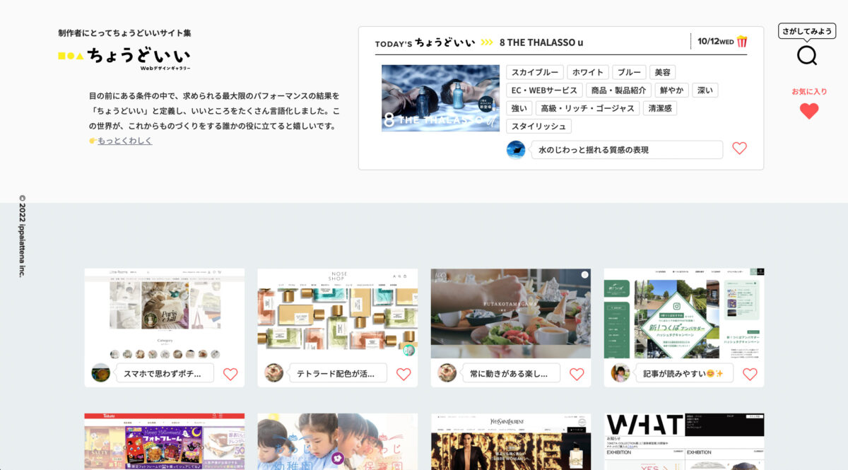 限られた条件の中で、最良のクリエイティブを『ちょうどいい』と定義して、キュレーターがそれぞれのWebサイトのちょうどいいポイントを端的に紹介していている『ちょうどいいWebデザインギャラリー』。