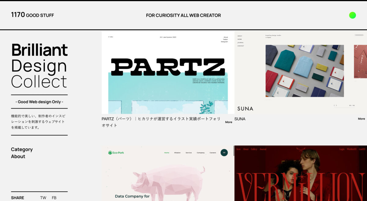 ブリリアントで機能的であり美しいWebサイトを紹介している『Brilliant Design Collect』。ビジュアルが良いサイトを多く紹介しているので制作者のインスピレーションを刺激してくれると思います。