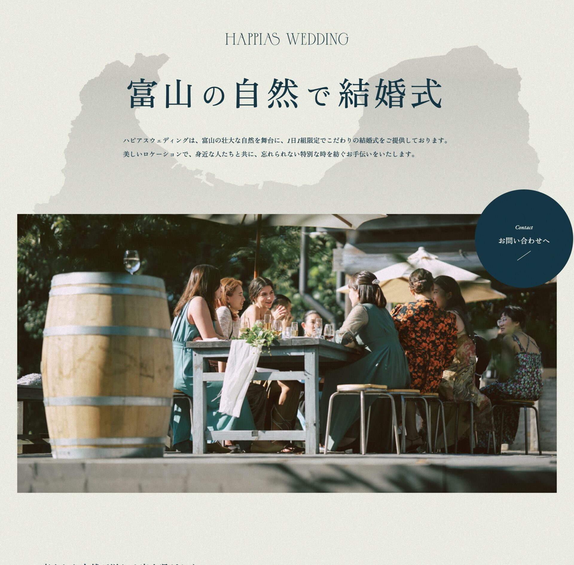 メインビジュアルに富山の地図を配置し、地域に根ざしている事業であることを表現しています。