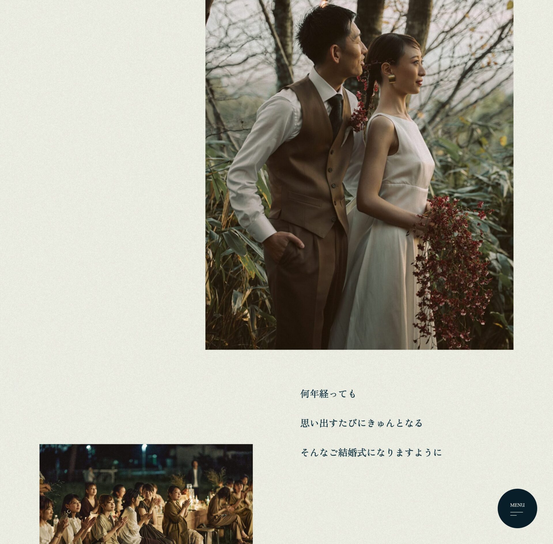 ハピアスウェディング様の世界観に共感された方にご連絡いただきたいという思いから、サービスの魅力を必要最低限で紹介するコンテンツのみにし、写真で伝えるかたちで構成しました。