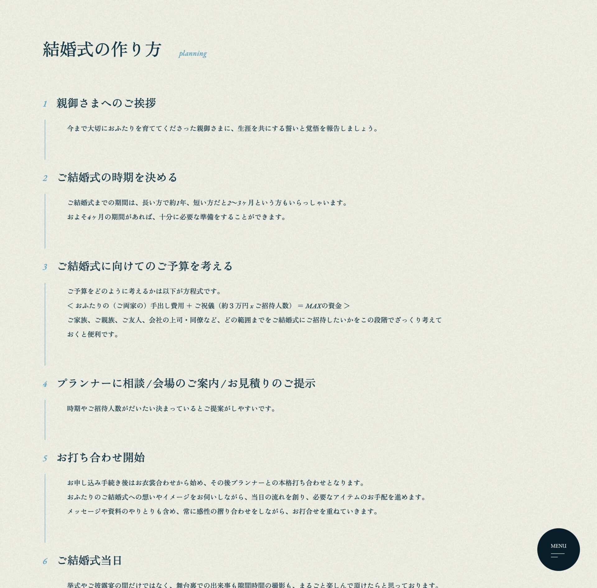 以前のウェブサイトでは、結婚式の実績紹介コンテンツやサービス紹介、お知らせなどの複数コンテンツがあったのですが、クライアントのご希望で全カット。